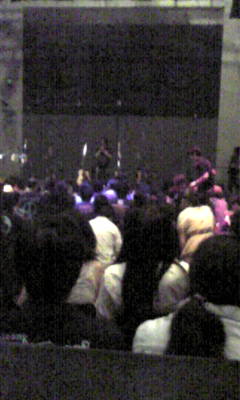 さてチッタ二日目、あああ、人がさらに少ないんですが…昨日は2/3くらい埋まっていたように見えましたが、今日は1/3くらい?前から5列めくらいに、混んでもいないのにバーが設置されているのは、昨日のドニーのダイブに会場側が懲りたかな?しかも後ろだけでなく前にも左右にテーブルが出てますよ。ははは。