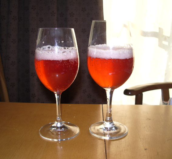 煮る時に出来るいちごシロップをカヴァで割って、夏の飲み物♪