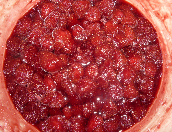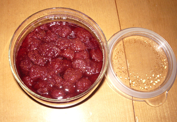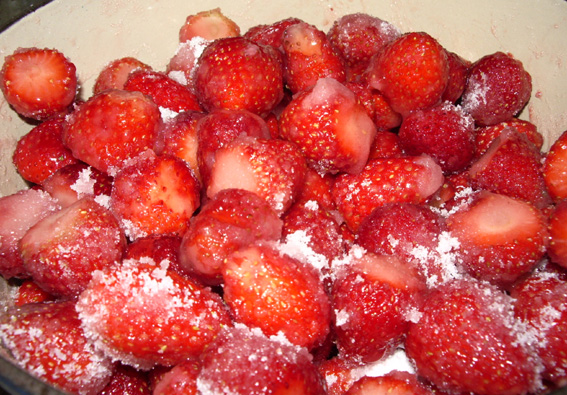 砂糖が溶けて、浸透圧で水っぽくなったところ。