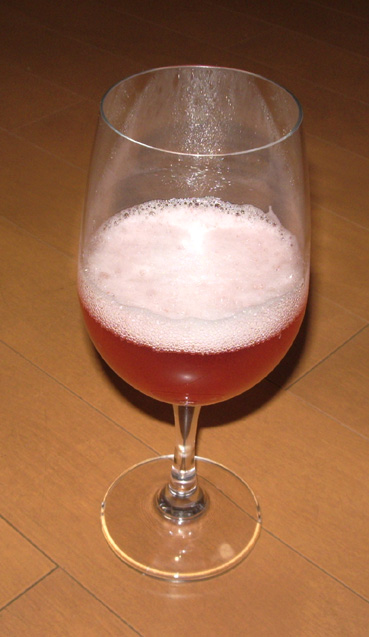 上の過程で煮詰めている時に、ちょっと分けておいたシロップをシャンパンで割ったカクテルです♪